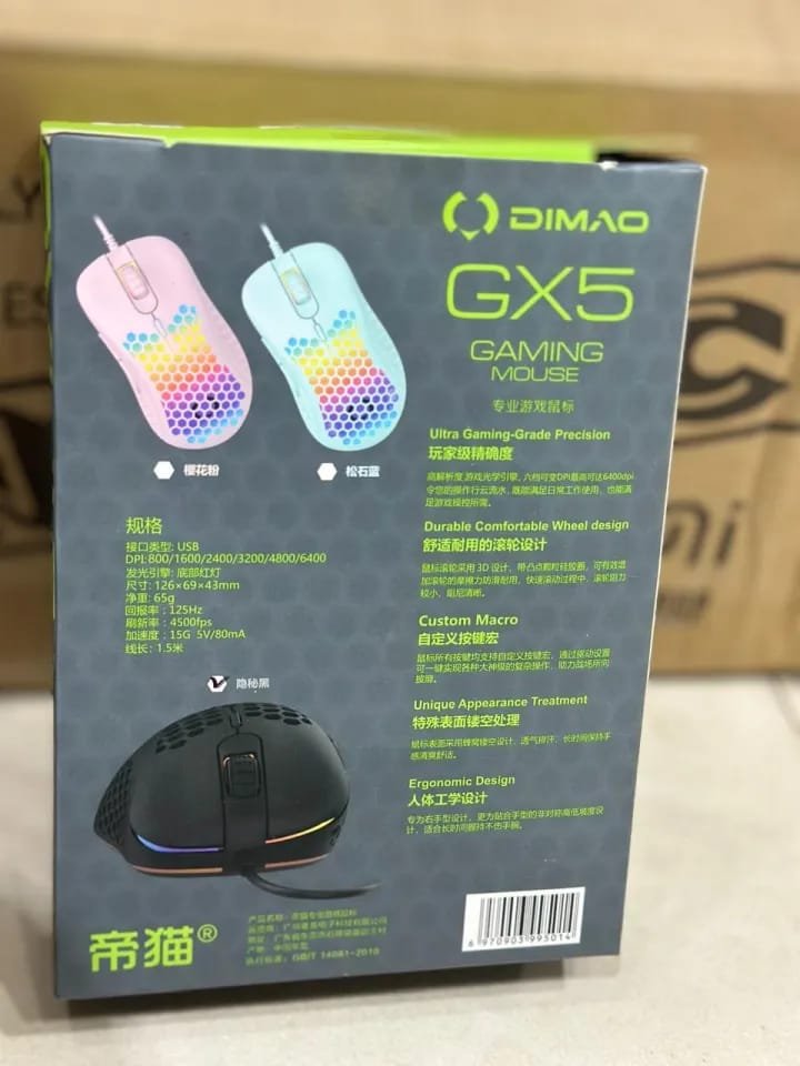 Be the first to review “Dimao GX5 RGB Wired Gaming Mouse, DPI 6400”